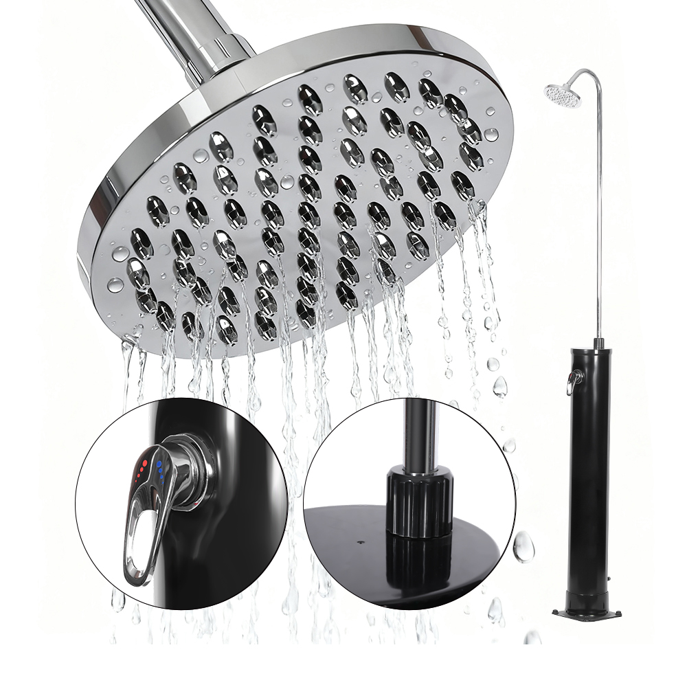 강한 햇빛에 노출되면 18/20리터 샤워 파이프의 물이 전기 없이도 자연적으로 약 60°C까지 가열되어 편리하고 친환경적인 샤워 솔루션을 제공합니다. 일반 정원용 호스를 부착하기만 하면 샤워 파이프를 쉽게 채울 수 있습니다. UV 방지 플라스틱으로 제작된 이 LY18L01-B 18L 원형 본체 야외 정원 수영장 태양열 샤워기는 내구성을 위해 설계되었으며 필요할 때 쉽게 분해하고 운반할 수 있습니다. 견고한 스테인리스 스틸, PVC, ABS, 구리 및 금속 베이스는 신뢰할 수 있는 안정성을 보장하여 자주 사용하는 동안에도 장치를 제자리에 안전하게 유지합니다. 또한 빠른 물 채우기를 위한 표준 정원 호스 커넥터와 샤워 파이프를 쉽게 비울 수 있는 배수 플러그를 갖추고 있어 겨울철 보관을 위해 샤워를 간단하게 준비할 수 있습니다.