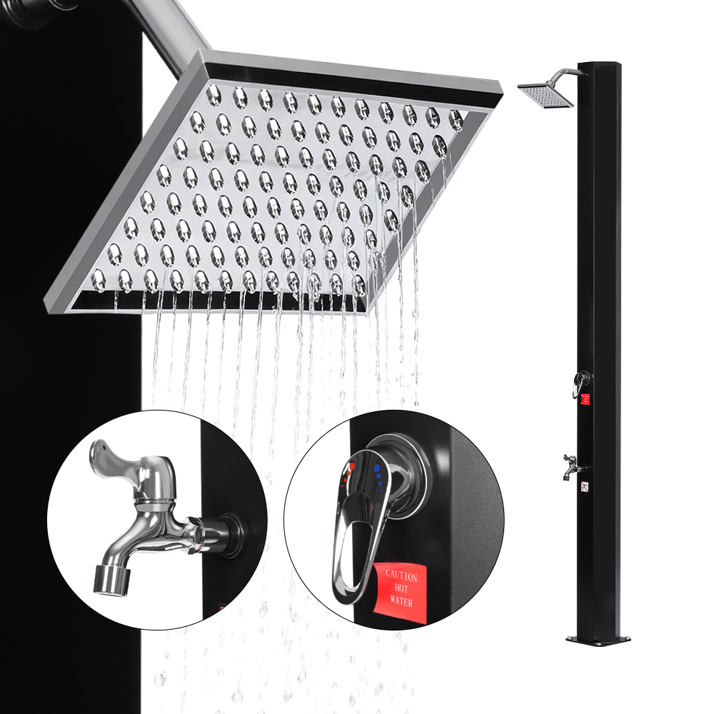 넉넉한 크기의 샤워 파이프를 갖춘 이 편리한 물 축적 방지 태양광 샤워는 햇빛 아래에서 최대 60°C까지 물을 효율적으로 가열하므로 전기가 필요 없으며 지속 가능한 야외 사용에 이상적입니다. 표준 정원 호스를 연결하여 샤워 파이프를 채우기만 하면 온 가족이 정원, 수영장 옆, 심지어 캠프장에서도 상쾌하고 편안한 샤워 경험을 즐길 수 있습니다. 세심하게 통합된 금속 트레이는 샤워 젤과 기타 필수품을 쉽게 손이 닿는 곳에 보관할 수 있는 편리한 장소를 제공하며, 바닥에 있는 배수 구멍은 원활한 물 흐름을 보장하고 물이 고이는 것을 방지합니다. 또한, 샤워기는 쉽게 분해할 수 있도록 설계되어 사용하지 않을 때 콤팩트하게 보관할 수 있어 비수기 보관 및 운반에 특히 실용적입니다.