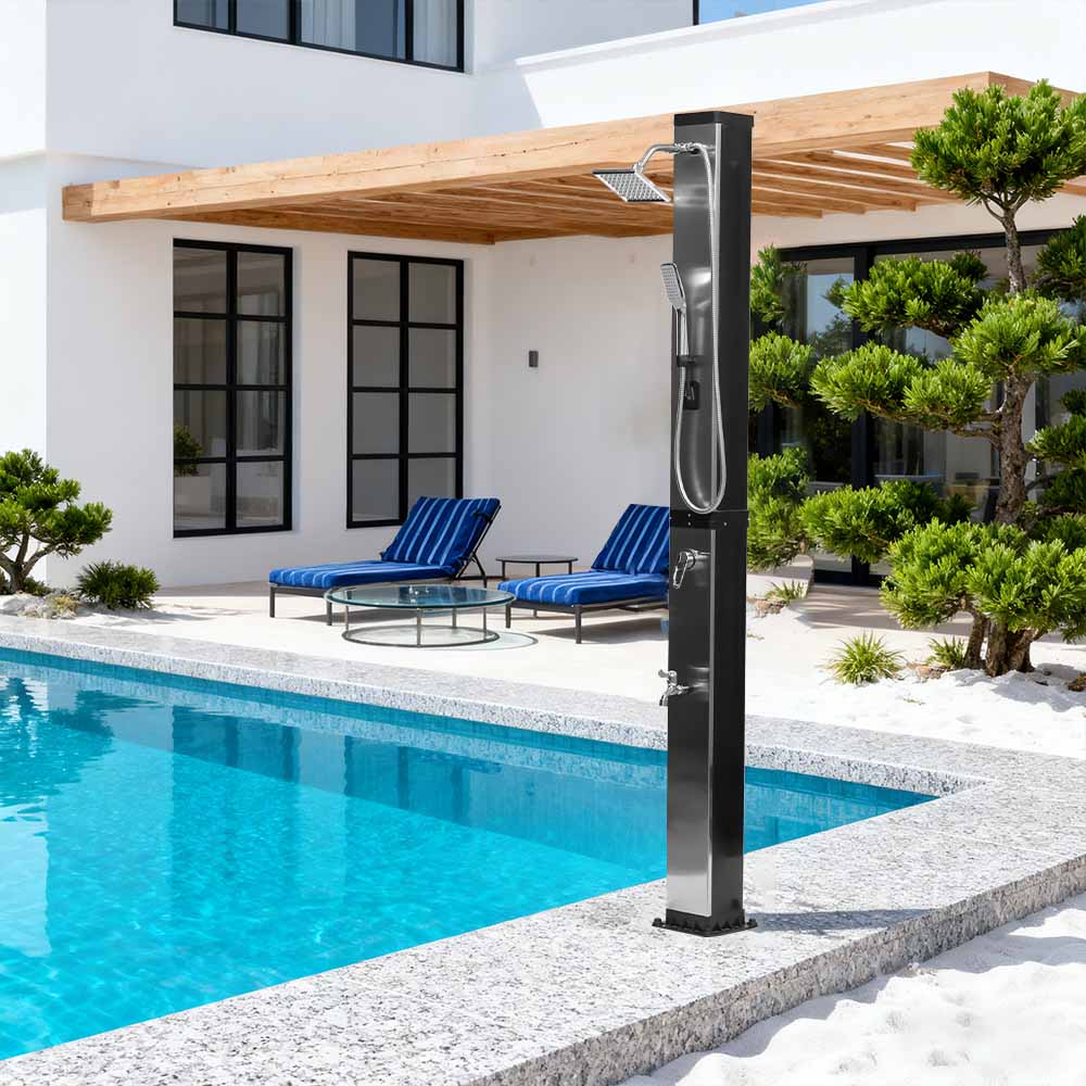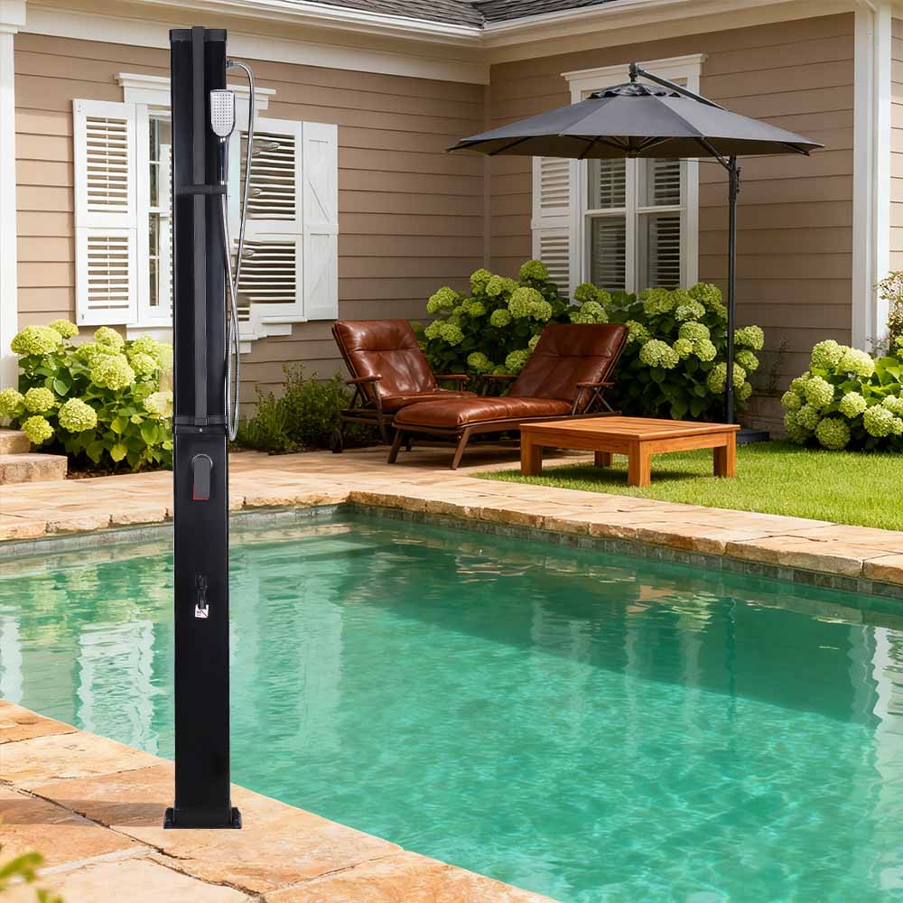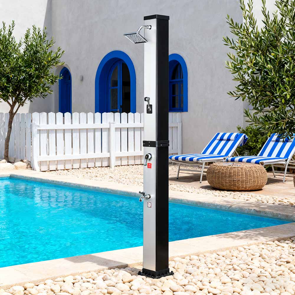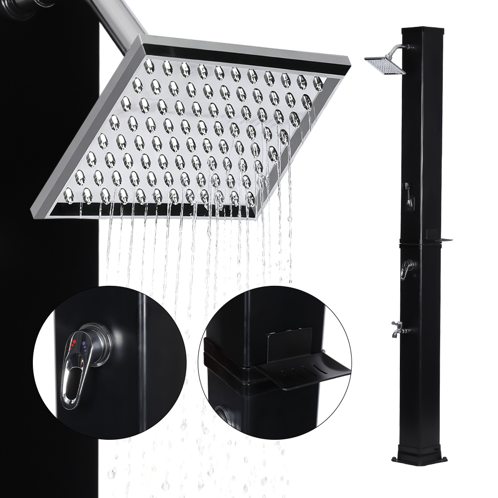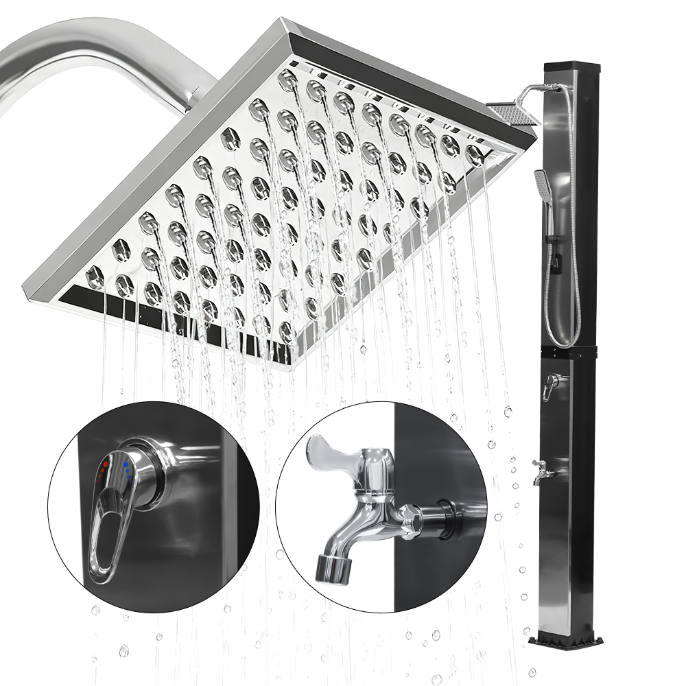 이 LY35L07 다기능 대용량 태양광 샤워기는 햇빛만 사용하여 최대 60°C까지 물을 가열하여 야외 목욕을 즐길 수 있는 에너지 절약형 및 환경 친화적인 방법을 제공합니다. 채우기는 간단합니다. 표준 정원 호스를 입구에 연결하기만 하면 샤워 파이프를 빠르게 사용할 수 있습니다. 내장된 금속 선반은 샤워 젤과 기타 필수품을 보관할 수 있는 편리한 장소를 제공하며, 바닥에 있는 배수 구멍은 물이 효율적으로 흘러나가도록 하여 해당 공간을 건조하고 깔끔하게 유지합니다. 다용성을 염두에 두고 설계된 이 태양광 샤워기는 해변, 수영장 옆, 별장, 호텔 또는 방갈로 등 다양한 환경에 적합합니다. 유연한 구조로 인해 다양한 환경에 적응할 수 있습니다.