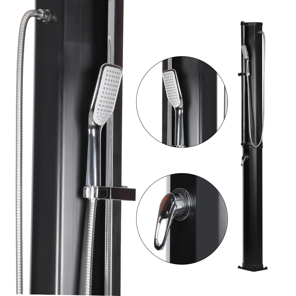 이 LY35L08-HB 안정적이고 효율적인 대용량 정원 태양광 샤워는 햇빛을 사용하여 효율적으로 작동합니다. 35리터의 대형 샤워 파이프는 햇빛이 충분할 때 물을 약 60°C까지 가열합니다. 재충전은 간단하고 전기가 필요하지 않으며 표준 정원 호스에 연결하여 쉽게 수행할 수 있습니다. 대형 레인 샤워헤드는 편안한 냉각 경험을 제공하며, 통합형 볼 조인트를 통해 최대 180°까지 다양한 각도로 회전할 수 있습니다. 설치도 매우 편리합니다. 전체 구조는 내구성이 뛰어나고 자외선에 강한 플라스틱으로 만들어져 장시간의 야외 노출을 효과적으로 견딜 수 있습니다. 샤워헤드는 비수기 동안 장소 간 이동이나 보관이 용이하도록 신속하게 분해됩니다. 견고한 금속 베이스는 설치 후 안정성과 안전성을 보장하므로 정원, 수영장 옆 또는 캠프장에서 편안하게 야외 샤워를 즐길 수 있습니다.