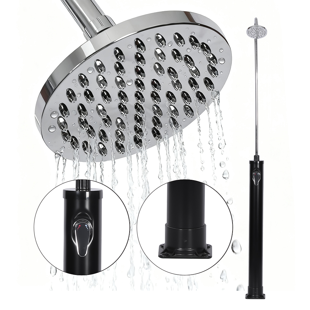이 LY08L02 8L 수영장 야외 태양열 정원 샤워는 정원, 수영장 옆 또는 캠핑 여행 등 야외 사용을 위한 이상적인 솔루션입니다. 햇빛만으로 전력을 공급받는 이 제품은 전기 없이도 물을 최대 60°C까지 가열할 수 있는 8리터 샤워 파이프를 갖추고 있습니다. 이 시스템은 샤워 파이프의 따뜻한 물과 정원 호스의 찬 물을 혼합하는 단일 레버 금속 수도꼭지를 사용하여 사용자 친화적으로 설계되어 부드럽고 지속적인 온도 조절이 가능합니다. 견고한 스테인리스 스틸 베이스는 장치가 안정적이고 안전하게 제자리에 유지되도록 보장하여 실외 물 요구 사항에 맞는 안정적인 성능을 제공합니다. 표준 정원 호스를 연결하기만 하면 샤워 파이프에 물을 채우고 어디에서나 뜨거운 물을 즐길 수 있습니다.