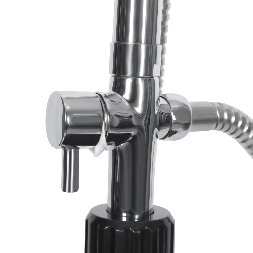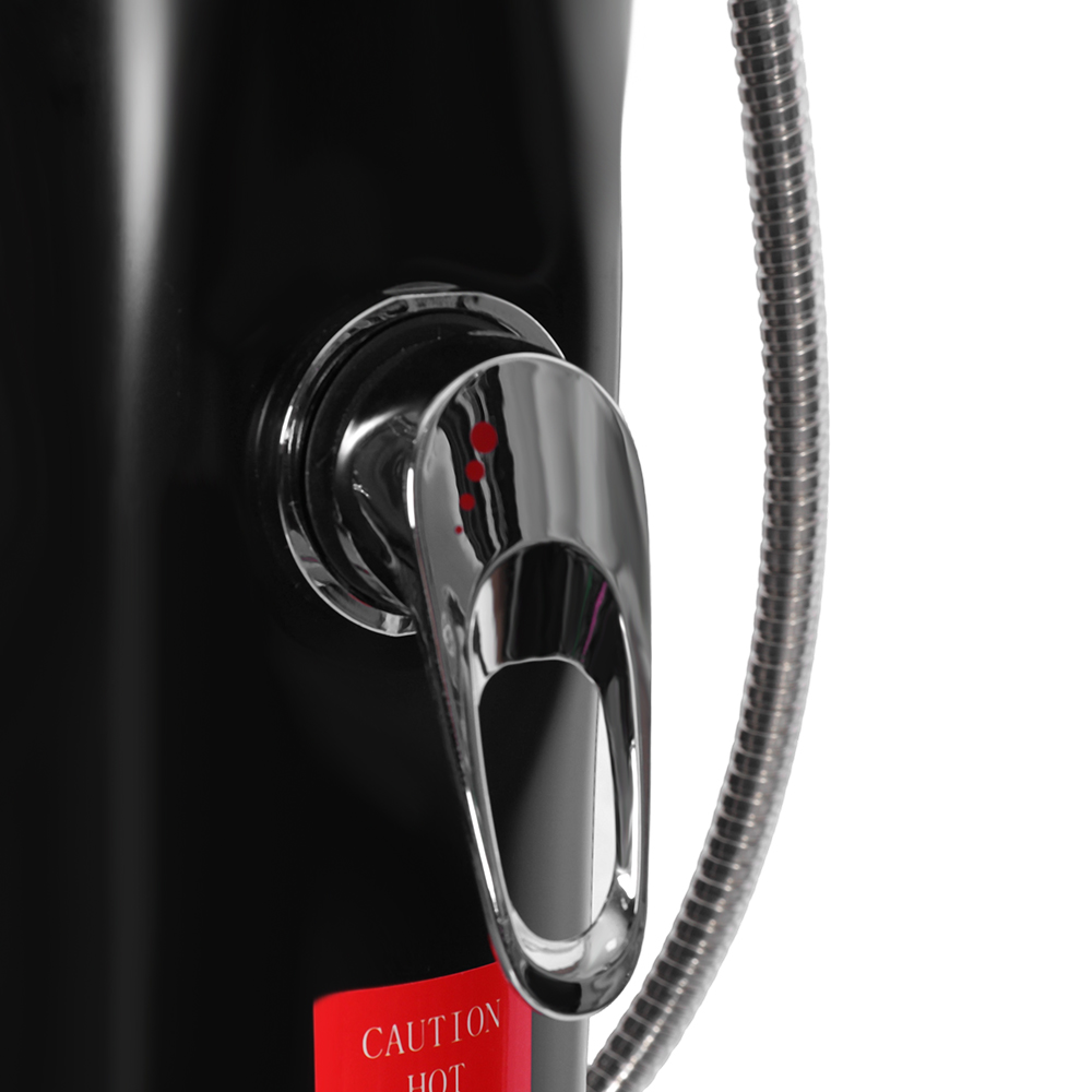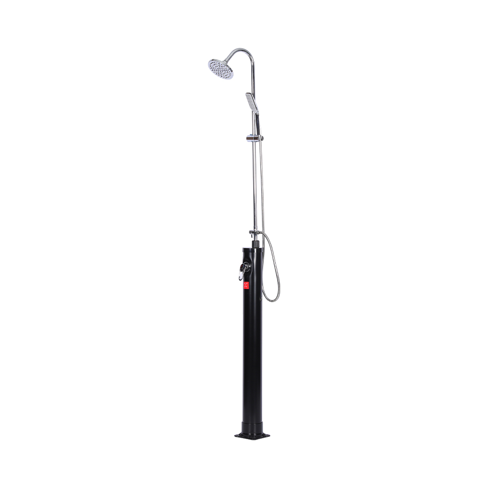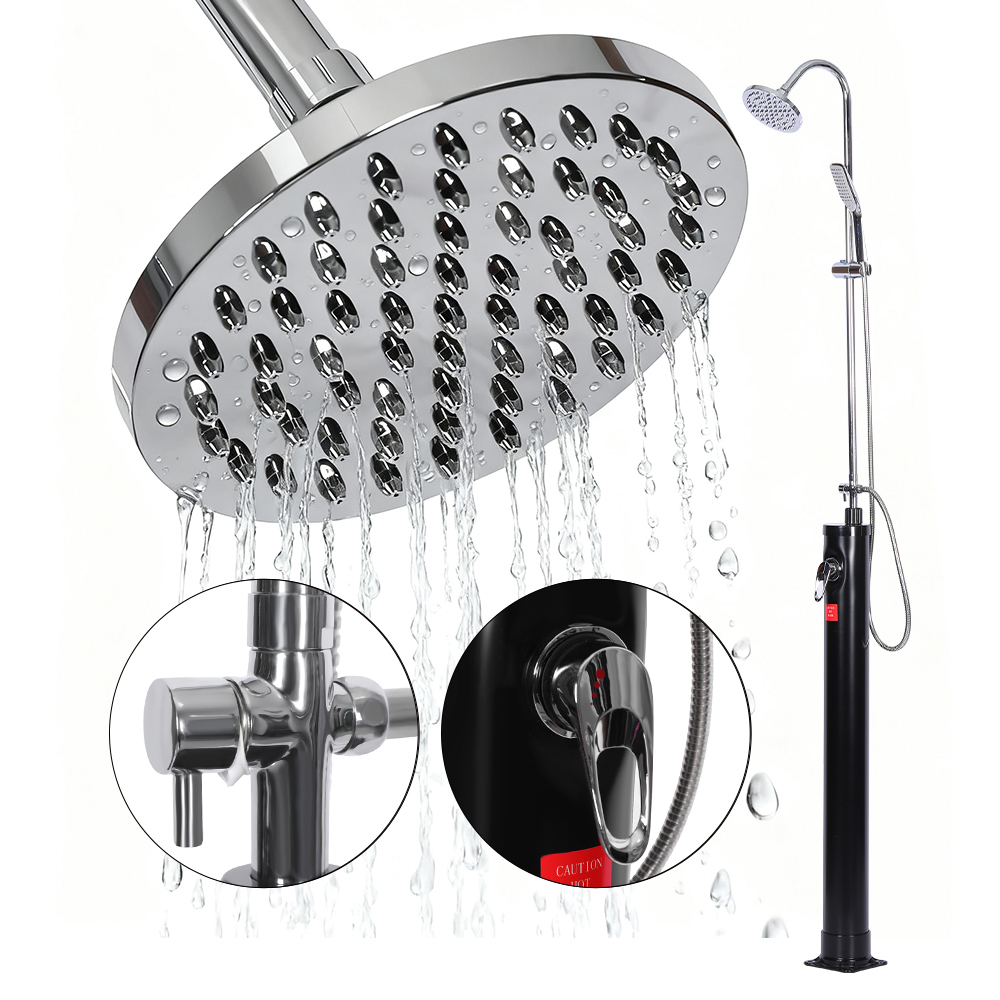 LY08L03 8L 야외 정원 수영장 태양열 샤워기는 샤워 파이프의 따뜻한 물과 정원 호스의 찬물을 혼합하여 수온을 정밀하게 조절하는 단일 레버 믹서를 갖추고 있습니다. 편리한 충전을 위한 정원용 호스 연결 장치와 안전한 겨울 보관을 위해 완벽한 배수가 가능한 배수 플러그가 장착되어 있습니다. 견고한 스테인리스 스틸 베이스를 기반으로 제작되어 안정성이 뛰어난 샤워기의 개별 부품은 나사로 단단히 고정되어 있으며 안전한 사용을 위해 바닥에 고정되어 있어야 합니다. 사용 설명서가 포함되어 있으며 여러 언어로 제공됩니다.
